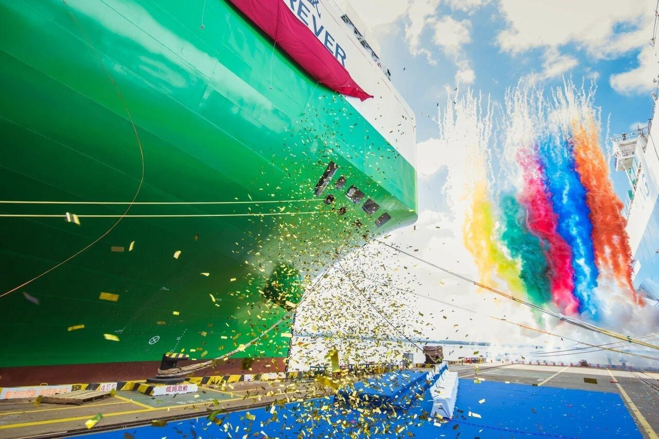 10月22日,安吉物流第40艘自营滚装船——9500车位级“安吉常盛”轮交付命名仪式在招商金陵仪征船厂举行。这是今年加入安吉物流远洋船队的第7艘新船,也是第5艘9500车位级新船。